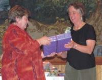 Betsy Strolle Gossens was honored at the Vergennes Opera House upon her retirement from Addison County Home Health and Hospice. Gossens had been with the agency for thirty years as a pediatric physical therapist. When Gossens began at Home Health in 1976 she was the only physical therapist working in community health in Addison County. Throughout her career she has played a key role in supporting families. She was a founding member of the Addison County Family Infant and Toddler Program and a pioneer in providing physical therapy in the home setting rather than a clinical setting. Gossens also contributed a chapter on home care physical therapy for the “Home Health Rehabilitation Handbook” by Bella May. “Clearly, she has earned the respect of clinicians inside and outside of Vermont,” said Michele Hadeka RN, a friend and colleague from Addison Home Health and Hospice. Parents as well as students publicly thanked Betsy for her caring and knowledgeable help in improving their lives. Former patients came forward and spoke about how grateful they were for Betsy's ongoing encouragement throughout their childhood. Steven McEvoy, once a young client of Gossens and a graduate of St. Michael's said, “Betsy Gossens was always there encouraging me on.” That sentiment was echoed by many. “She was always interested in whatever I did,” said Evan Minod. “Betsy has clearly had an incredible impact on this community and the people in it,” said Michele Hadeka Betsy Strolle Gossens was recently recognized by WomenSafe with the 2006 Kimberly Krans Women Who Change the World Award. The award is given for outstanding work that has furthered the safety of women and children in the community. Barbara Beatty who will be taking over as pediatric physical therapist at Home Health said, “The bar has been set very high. Many of Betsy's families see her as an extended family member. She has left an amazing legacy of helping parents and children .” “Betsy has that rare ability to connect with a child the moment she meets with them,” said Sharon Thompson upon presenting Betsy with a gift in recognition of her dedication to clients over her thirty year career working with Addison County families.