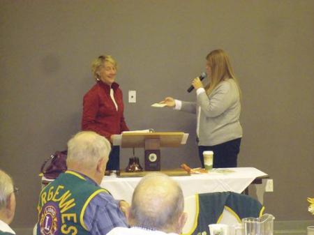 LtoR: Maryanne Castimore receiving check from President Shanon Atkins.